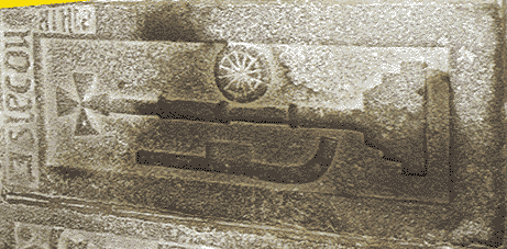 A droite : un bras d'honneur sur le sol de l'église!