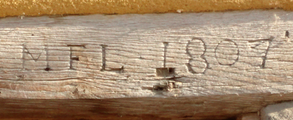 gravé sur une poutre en bois